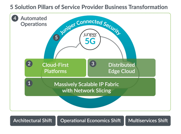 Juniper is helping to bring the Cloud + 5G + AI era to life with five integrated pillars.